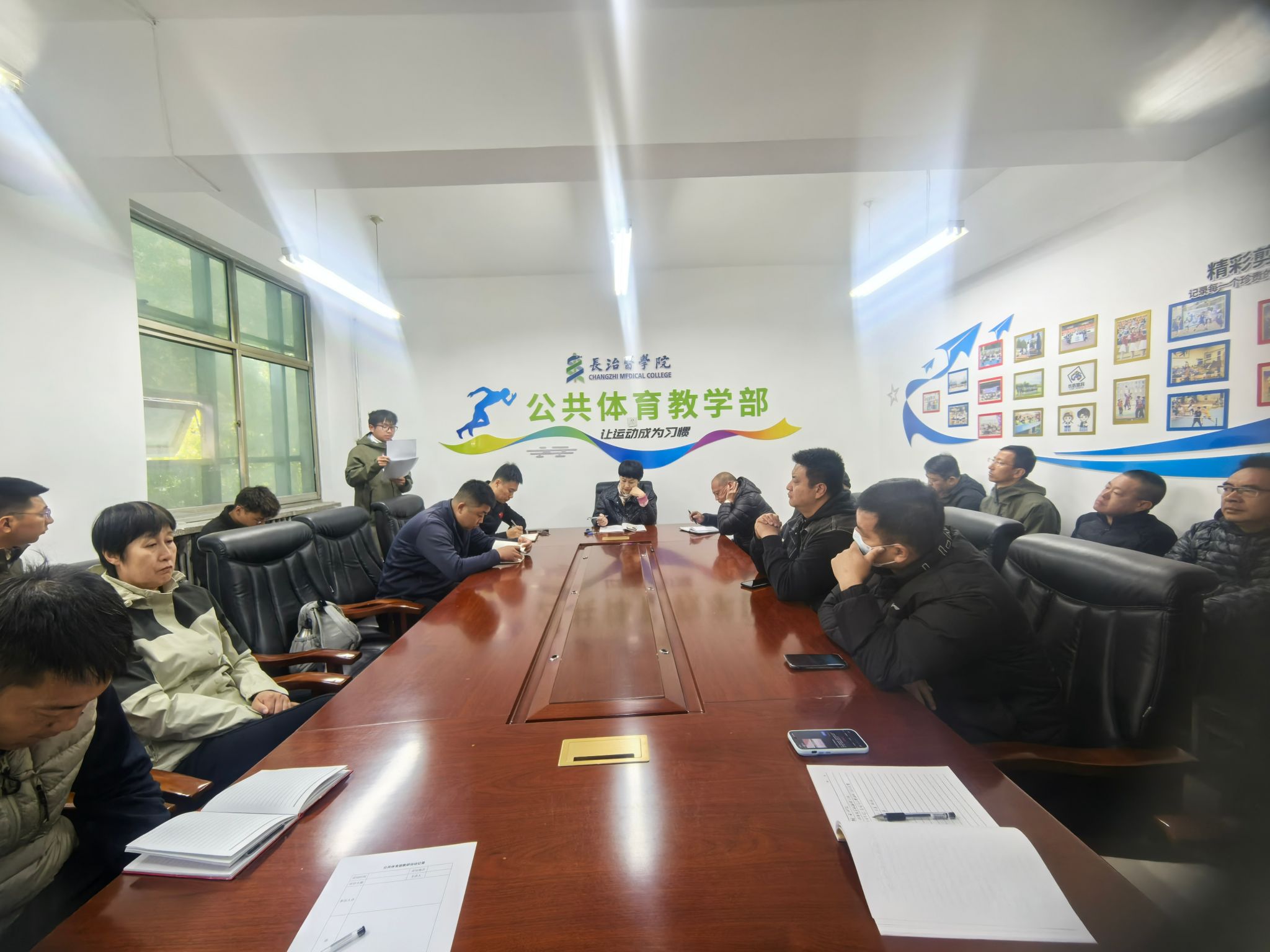2025年10月27日上午,公共体育教学部全体教师在公共体育部会议室以《长治医学院相关文件解读与学习》为核心主题,召开了公共体育教学部本学期第五次专题教研活动,由郭龙龙、王超、郝小飞、史思远四位青年教师牵头,分别围绕《长治医学院教学管理文件汇编》、《长治医学院教师培训发展、职称评定实施办法》、《长治医学院奖励性绩效工资实施办法》和《长治医学院1+3+3报告》展开解读分享。全体教师同步参与研讨交流,旨在通过“青年解读+集体研讨”的形式,帮助部门教师精准掌握学校制度要求、明确职业发展路径、清晰绩效评价标准,为后续教学工作规范开展与个人职业成长筑牢基础。