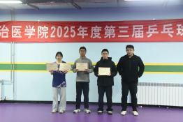 10月25日—26日,长治医学院2025年第三届校园乒乓球联赛在校乒乓球馆举行,本届联赛由长治医学院体育运动委员会主办,公共体育教学部承办,共有来自全校各院系的17支代表队参赛,参赛选手接近200人次。比赛共设置混合团体、男子单打、女子单打三个项目。