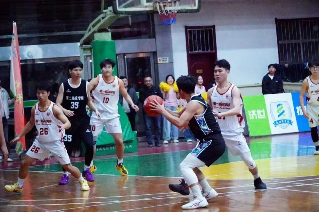 男篮决赛中,第一临床学院与第二临床学院强强对决,展现出极致的竞技张力,每一次倒地救球、每一次奋力封盖,都彰显着“不服输、不放弃”的拼搏底色。观众台上座无虚席,每一次精彩瞬间,都伴随着他们的震耳欲聋的欢呼。最后经过精彩角逐,第一临床学院获得男篮总冠军。